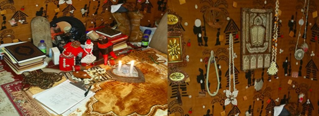 Par son savant mélange des forces religieuses et animistes, le marabout Kader façonne des armes spirituelles pour la protection des sentiers de l’existence. Il peut concevoir d’étonnantes magies rituelliques pour créer envoûtements et désenvoûtements. Ainsi, maitrisant les flux positifs et négatifs, il supprime les sortilèges, fait revenir la chance, apporte le succés aux familles, protège la clientèle des entreprises, etc…*